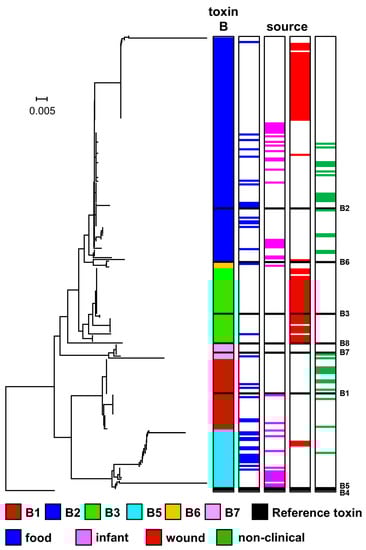 2.3. Diversity and Phylogeny of C. botulinum Group I type B Strains and Their Botulinum Neurotoxin Genes