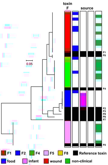 2.4. Diversity and Phylogeny of C. botulinum Group I Type F Strains and Their Botulinum Neurotoxin Genes