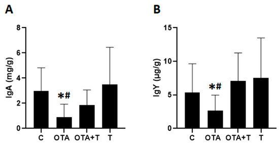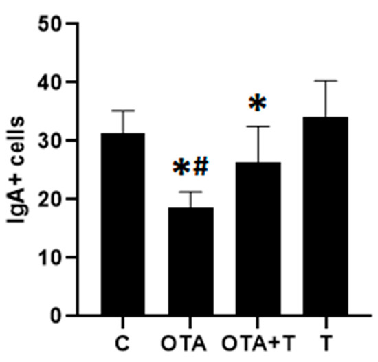 Chicago/Turabian StyleRicci, Fernando Galdino, Leticia Rodrigues Terkelli, Emerson José Venancio, Larissa Justino, Beatriz Queiroz dos Santos, Ana Angelita Sampaio Baptista, Alexandre Oba, Bianca Dorana de Oliveira Souza, Ana Paula Frederico Rodrigues Loureiro Bracarense, Elisa Yoko Hirooka, and et al. 2021. "Tryptophan Attenuates the Effects of OTA on Intestinal Morphology and Local IgA/IgY Production in Broiler Chicks" Toxins 13, no. 1: 5. https://doi.org/10.3390/toxins13010005