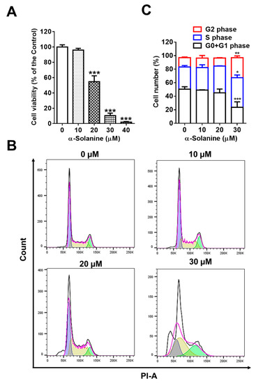 2.1. α-Solanine Inhibited Proliferation and Induced Cell Cycle Arrest of HTR-8/SVneo Cells