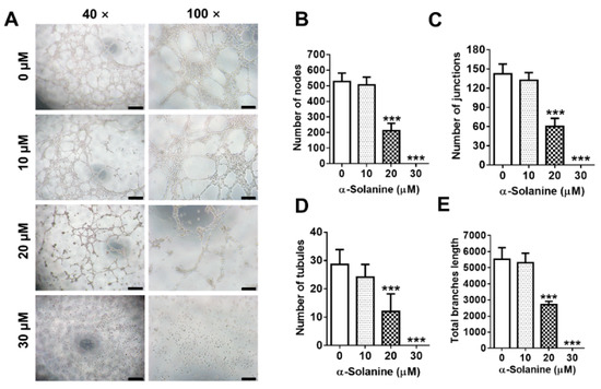 2.4. α-Solanine Inhibited the Endothelial-Like Tube Formation in HTR-8/SVneo Cells