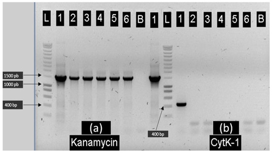 2.1. Construction of E28.3cytK-1 KO-A and E8.1cytK-1 KO B. cytotoxicus Mutants Lacking cytK-1