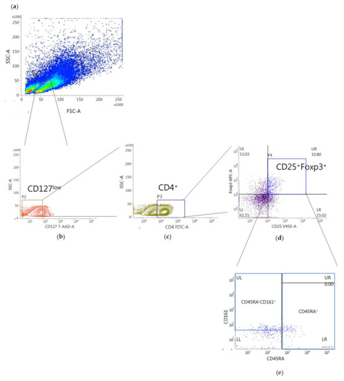 - Hartigan-O’Connor, D.J.; Poon, C.; Sinclair, E.; McCune, J.M. Human CD4+ regulatory T cells express lower levels of the IL-7 receptor alpha chain (CD127), allowing consistent identification and sorting of live cells. J. Immunol. Methods 2007, 319, 41–52. [Google Scholar] [CrossRef] [PubMed]