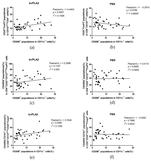 2.3. Correlations between Tregs after Treated with bvPLA2 or PBS and CD11c+CD206+ DCs in hPBMCs