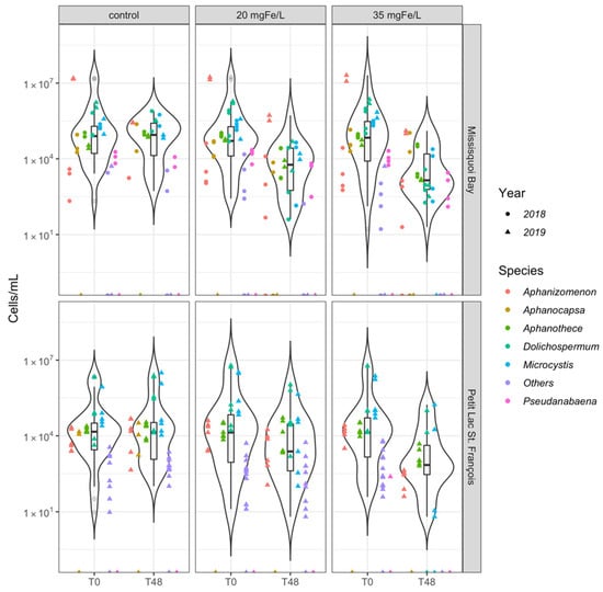 - Zamyadi, A.; Dorner, S.; Sauvé, S.; Ellis, D.; Bolduc, A.; Bastien, C.; Prévost, M. Species-Dependence of cyanobacteria removal efficiency by different drinking water treatment processes. Water Res. 2013, 47, 2689–2700. [Google Scholar] [CrossRef] [PubMed]
