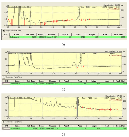 A chromatogram showing OTA in a dinner sample extract is reported in Figure 1.