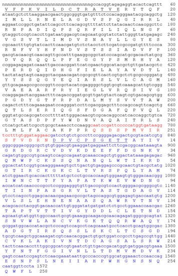 - Sievers, F.; Wilm, A.; Dineen, D.; Gibson, T.J.; Karplus, K.; Li, W.; Lopez, R.; McWilliam, H.; Remmert, M.; Söding, J.; et al. Fast, scalable generation of high-quality protein multiple sequence alignments using Clustal Omega. Mol. Syst. Biol. 2011, 7, 539. [Google Scholar] [CrossRef] [PubMed]