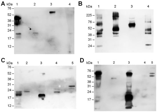 - Stábeli, R.G.; Magalhães, L.M.; Selistre-de-Araujo, H.S.; Oliveira, E.B. Antibodies to a fragment of the Bothrops moojenil-amino acid oxidase cross-react with snake venom components unrelated to the parent protein. Toxicon 2005, 46, 308–317. [Google Scholar] [CrossRef] [PubMed]
