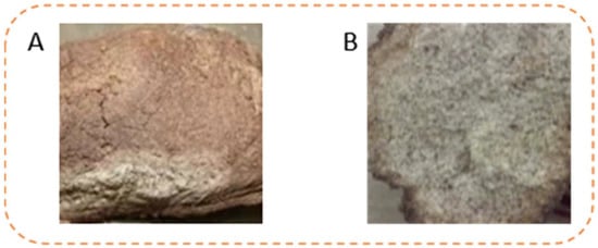 Fermented daqu (A) Positive daqu; (B) moldy, abnormal daqu.