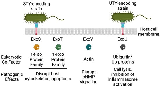 - Barbieri, J.T.; Sun, J. Pseudomonas aeruginosa ExoS and ExoT. Rev. Physiol. Biochem. Pharmacol. 2004, 152, 79–92. [Google Scholar] [CrossRef]