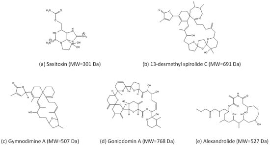 - García-Altares, M. Structural Diversity of Microalgal Marine Toxins; Elsevier Ltd.: Amsterdam, The Netherlands, 2017; Volume 78. [Google Scholar]