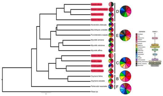 2.3. No Correlation between Terebrid Venom Complexity and Diet Diversity