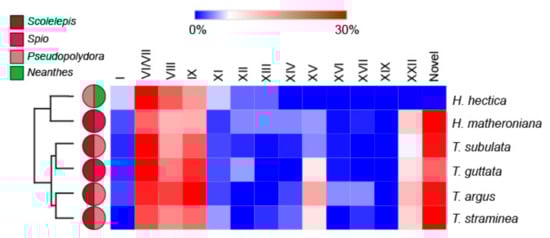 Specifically, H. hectica has a higher proportion of frameworks I and XI putative teretoxins and surprisingly has no framework XXII putative teretoxins, which on average account for approximately 7% of all teretoxins found in all specimens tested. Interestingly, of the six individuals analyzed, H. hectica was the only individual that consumed Neanthes and did not consume Scolelepis, which was found as prey in all other terebrid species examined (Figure 5). Likewise, T. subulata, T. argus, and T. straminea all consume the same genera of annelids (Scolelepis and Pseudopolydora) but their venom composition is not the same. A similar pattern is shown with H. matheroniana and T. guttata, further suggesting venom complexity may not be associated with diet preferences.