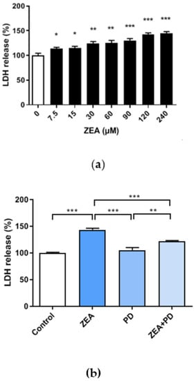 2.2. PD Reduces the ZEA-Induced Cytotoxic Effect in MAC-T Cells