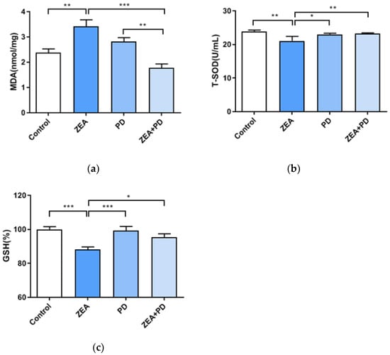 2.3. PD Can Inhibit ZEA-Induced Oxidative Damage