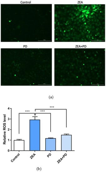 2.4. PD Inhibits ZEA-Induced Increases in ROS Levels