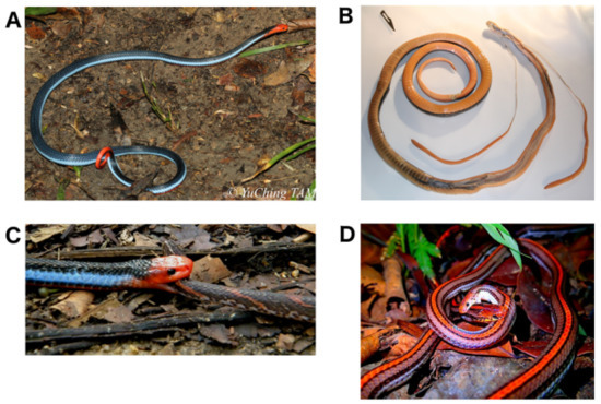 - Wallach, V.; Williams, K.L.; Boundy, J. Snakes of the World: A catalogue of Living and Extinct Species; CRC Press: Boca Raton, FL, USA, 2014. [Google Scholar]