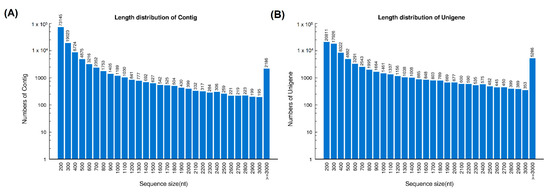 Length distribution of contigs (A) and unigenes (B) from the de novo assembly of H. curtus venom-gland transcriptome.