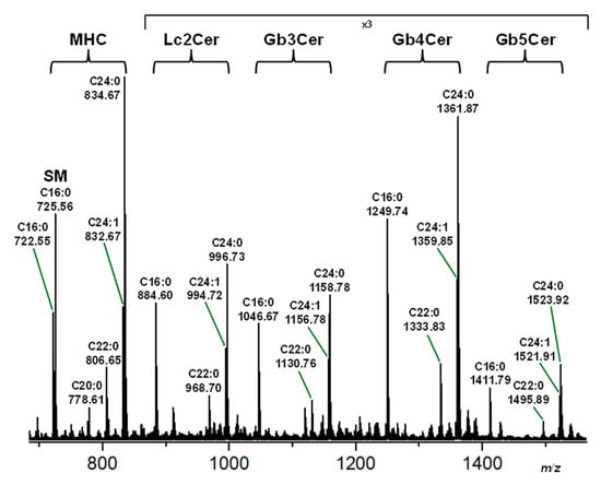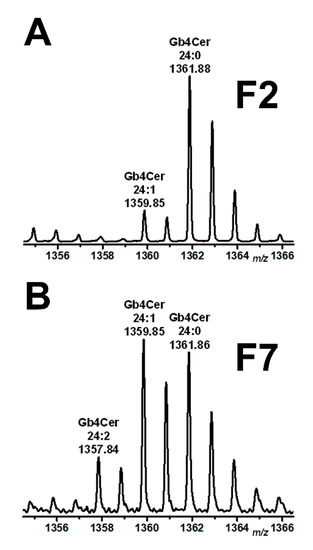 - Müthing, J.; Distler, U. Advances on the compositional analysis of glycosphingolipids combining thin-layer chromatography with mass spectrometry. Mass Spectrom. Rev. 2010, 29, 425–479. [Google Scholar] [CrossRef]
