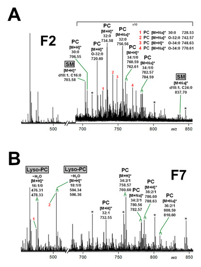 - Kouzel, I.U.; Pirkl, A.; Pohlentz, G.; Soltwisch, J.; Dreisewerd, K.; Karch, H.; Müthing, J. Progress in detection and structural characterization of glycosphingolipids in crude lipid extracts by enzymatic phospholipid disintegration combined with thin-layer chromatography immunodetection and IR-MALDI mass spectrometry. Anal. Chem. 2014, 86, 1215–1222. [Google Scholar] [CrossRef] [PubMed]