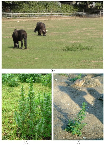 - Marchi, S.R.; Silva, H.M.; Ferreira, C.F.; Marques, R.F.; Moraes, J.B. Interference of noxious shrubs on grazing behaviour by bovines. Planta Daninha 2019, 37, e019185644. [Google Scholar] [CrossRef]