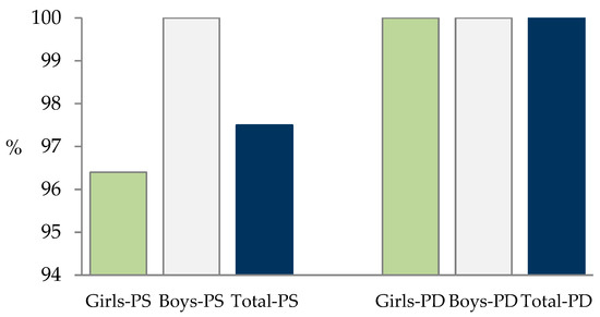 Percentage of STER incidence after the treatment. PS: healthy children. PD: children with digestive disorders.