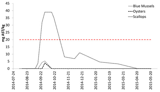 | PST range (mg STX equiv/kg) | 0.04–37.2 | 0.12–9.29 |