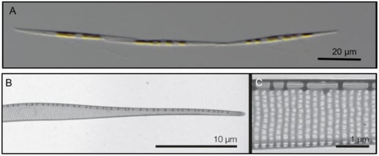 - Lundholm, N.; Daugbjerg, N.; Moestrup, Ø. Phylogeny of the Bacillariaceae with emphasis on the genus Pseudo-nitzschia (Bacillariophyceae) based on partial LSU rDNA. Eur. J. Phycol. 2002, 37, 115–134. [Google Scholar] [CrossRef]