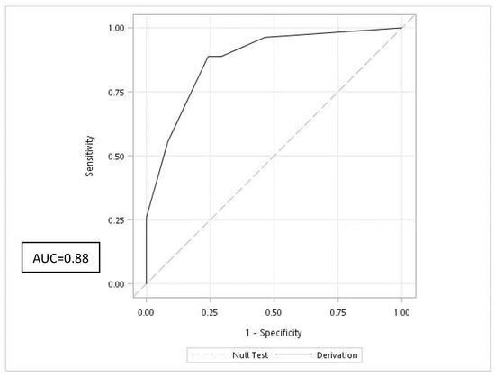 Categorical variables are reported as frequencies and percentages, whereas continuous variables are expressed as mean ± standard deviation, unless otherwise indicated. For univariate analyses, we conducted Student’s t-test and a chi-squared test to evaluate numerical and categorical variables separately. To assess the strength of the association between two groups and express statistical differences, odds ratios and 95% confidence intervals were used. Variables with p < 0.1 were identified as possible predictors for further multivariate analysis using multiple logistic regression. We used Youden’s index or the most optimal value(s) to determine the cut-off points for Cobra BITE score variables. Through weighting these variables according to their β coefficients, the Cobra BITE score was then created. A Hosmer-Lemeshow analysis was used to test the model’s stability. Finally, the ROC curves and area under the curve were used to determine the accuracy of this prediction model. A p value of <0.05 was considered statistically significant. All statistical analyses were performed using SAS statistical software version 9.2 (SAS Institute, Cary, NC, USA, 2013).