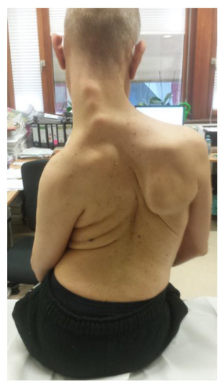 He is highly cooperative concerning his BoNT/A injections but not WD. He is injected every 3 months with 200 U of incoBoNT/A into the back and 200 U into the left arm, with a good response (Figure 3).
