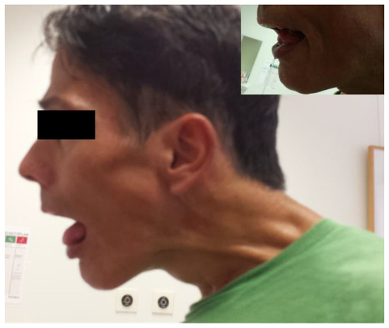 - Teive, H.A.; Klüppel, L.E.; Munhoz, R.P.; Becker, N.; Müller, P.R.; Werneck, L.C. Jaw-opening oromandibular dystonia secondary to Wilson’s disease treated with botulinum toxin type A. Arq. Neuropsiquiatr. 2012, 70, 407–409. [Google Scholar] [CrossRef] [PubMed]