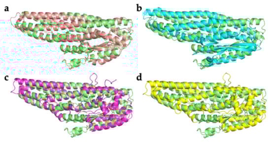 - Song, Y.; DiMaio, F.; Wang, R.Y.-R.; Kim, D.; Miles, C.; Brunette, T.; Thompson, J.; Baker, D. High-resolution comparative modeling with RosettaCM. Structure 2013, 21, 1735–1742. [Google Scholar] [CrossRef] [PubMed]