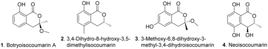 Phytotoxic benzopyrones from fungi mainly include benzo-α-pyrones and benzo-γ-pyrones. Benzo-α-pyrones are also called isocoumarin derivatives. The structures of fungal phytotoxic benzo-α-pyrones are shown in Figure 1.