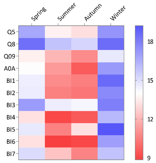 However, it is noteworthy that the relative expression of Q09 was far higher than that of the other isoforms in the winter sample. Q8 exhibited the lowest expression among all the isoforms in spring, summer, and autumn, but the expression of Q8 in winter was slightly higher than that of BI5, which was similar to the expression of BI1 (Figure 1).