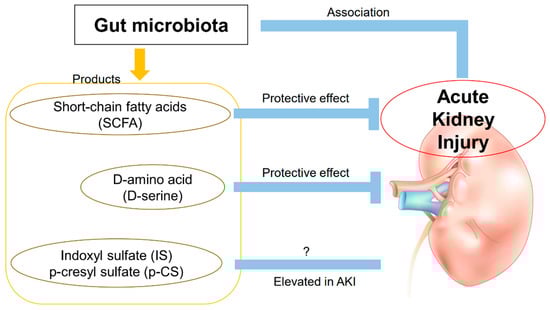 The relationship between AKI and the gut microbiota is still poorly understood (Figure 1), unlike the relationship between CKD and the gut microbiota. Further studies on AKI pathogenesis and therapeutic applications are expected.