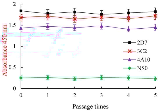 2.4. Identification of the Karyotype, Isotype, and Stability of Hybridoma Cell Lines
