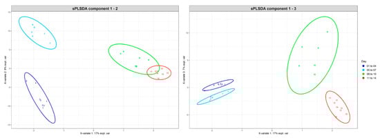 - Rohart, F.; Gautier, B.; Singh, A.; Le Cao, K.A. mixOmics: An R package for ‘omics feature selection and multiple data integration. PLoS Comput. Biol. 2017, 13, e1005752. [Google Scholar] [CrossRef]