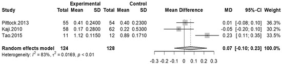 - Higgins, J.P.T.; Thompson, S.G.; Deeks, J.J.; Altman, D.G. Measuring inconsistency in meta-analyses. BMJ 2003, 327, 557–560. [Google Scholar] [CrossRef] [PubMed]