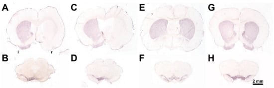 - Paxinos, G.; Watson, C. The Rat Brain in Stereotaxic Coordinates, 7th ed.; Elsevier/Academic Press: Amsterdam, The Netherlands; London, UK, 2015; ISBN 9780123919496. [Google Scholar]