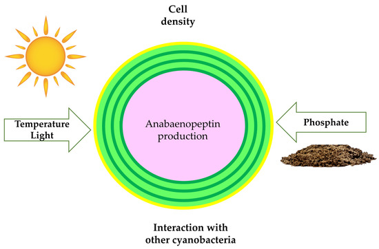 Major factors involved in anabaenopeptin regulation in cyanobacteria.
