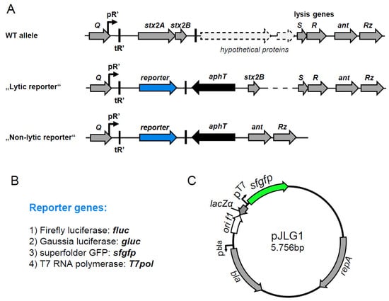 - Aertsen, A.; Van Houdt, R.; Michiels, C.W. Construction and use of an stx1 transcriptional fusion to gfp. FEMS Microbiol. Lett. 2005, 245, 73–77. [Google Scholar] [CrossRef]