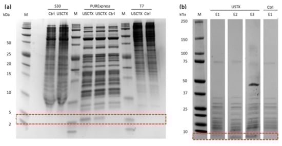 - Wang, Y.; Xu, W.; Kou, X.; Luo, Y.; Zhang, Y.; Ma, B.; Wang, M.; Huang, K. Establishment and optimization of a wheat germ cell-free protein synthesis system and its application in venom kallikrein. Protein Expr. Purif. 2012, 84, 173–180. [Google Scholar] [CrossRef] [PubMed]