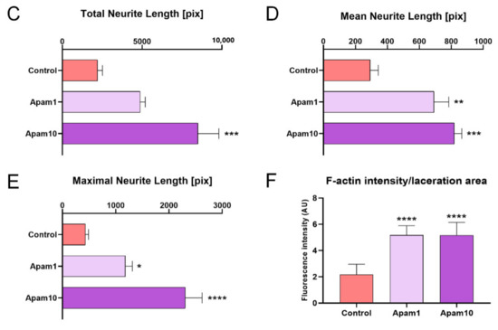 2.3. Apamin Enhances Neurite Outgrowth and Axon Regeneration after Laceration Injury in Mature Cortical Neurons