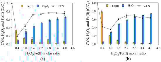 2.1. The Effect of H2O2/Fe(II) Molar Ration on CYN Degradation