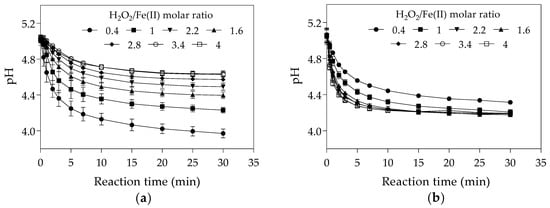 - Lee, H.; Lee, H.J.; Sedlak, D.L.; Lee, C. pH-Dependent reactivity of oxidants formed by iron and copper-catalyzed decomposition of hydrogen peroxide. Chemosphere 2013, 92, 652–658. [Google Scholar] [CrossRef] [PubMed]
