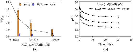 2.2. The Effect of Initial H2O2 and Fe(II) Concentration on CYN Degradation