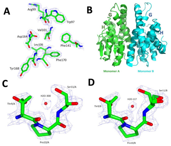 - McNicholas, S.; Potterton, E.; Wilson, K.; Noble, M. Presenting your structures: TheCCP4mgmolecular-graphics software. Acta Crystallogr. Sect. D Biol. Crystallogr. 2011, 67, 386–394. [Google Scholar] [CrossRef] [PubMed]