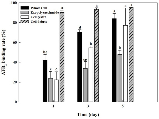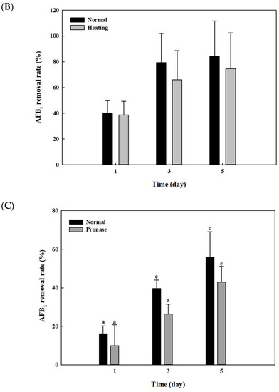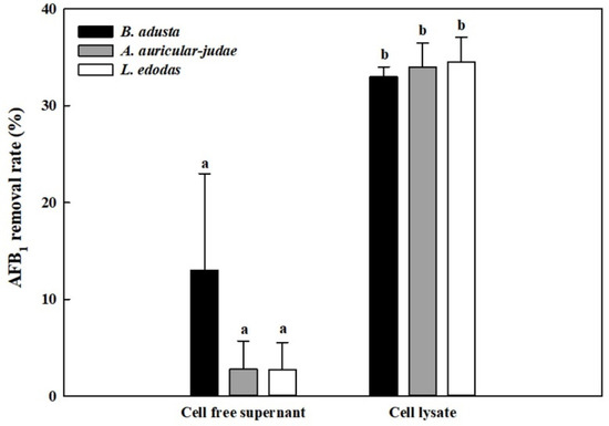 2.3. AFB1 Removal by Cell-Free Supernatants and Cell Lysates
