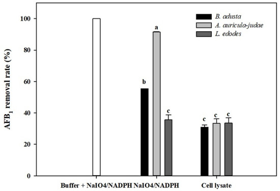5.7. Effects of 3 mM NaIO4 and 0.2 mM NADHP on AFB1 Removal by Cell Lysates
