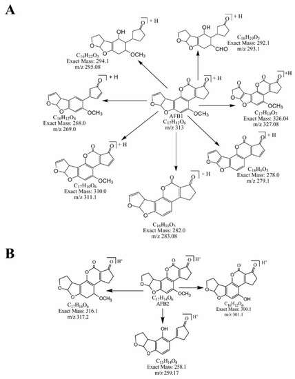 APA StyleAnjum, T., Iram, W., Iqbal, M., Abbas, M., Akram, W., & Li, G. (2022). Structure Elucidation and Toxicity Analysis of the Byproducts Formed after Biodegradation of Aflatoxins B1 and B2 Using Extracts of Mentha arvensis. Toxins, 14(1), 24. https://doi.org/10.3390/toxins14010024